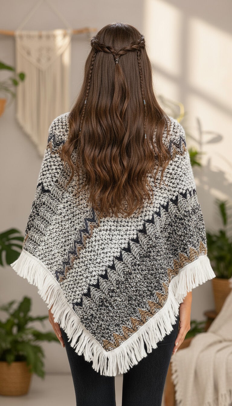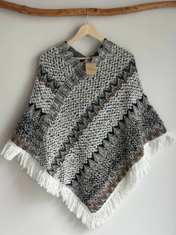 Suave y ligera poncho de 100% acrílico, rematada con divertidos flecos. El complemento perfecto para realzar cualquier conjunto. Esta poncho versátil puede usarse todo el año: como chaqueta ligera en entretiempo, en una fresca noche de verano, en el coche para mayor comodidad o simplemente cómoda en casa.