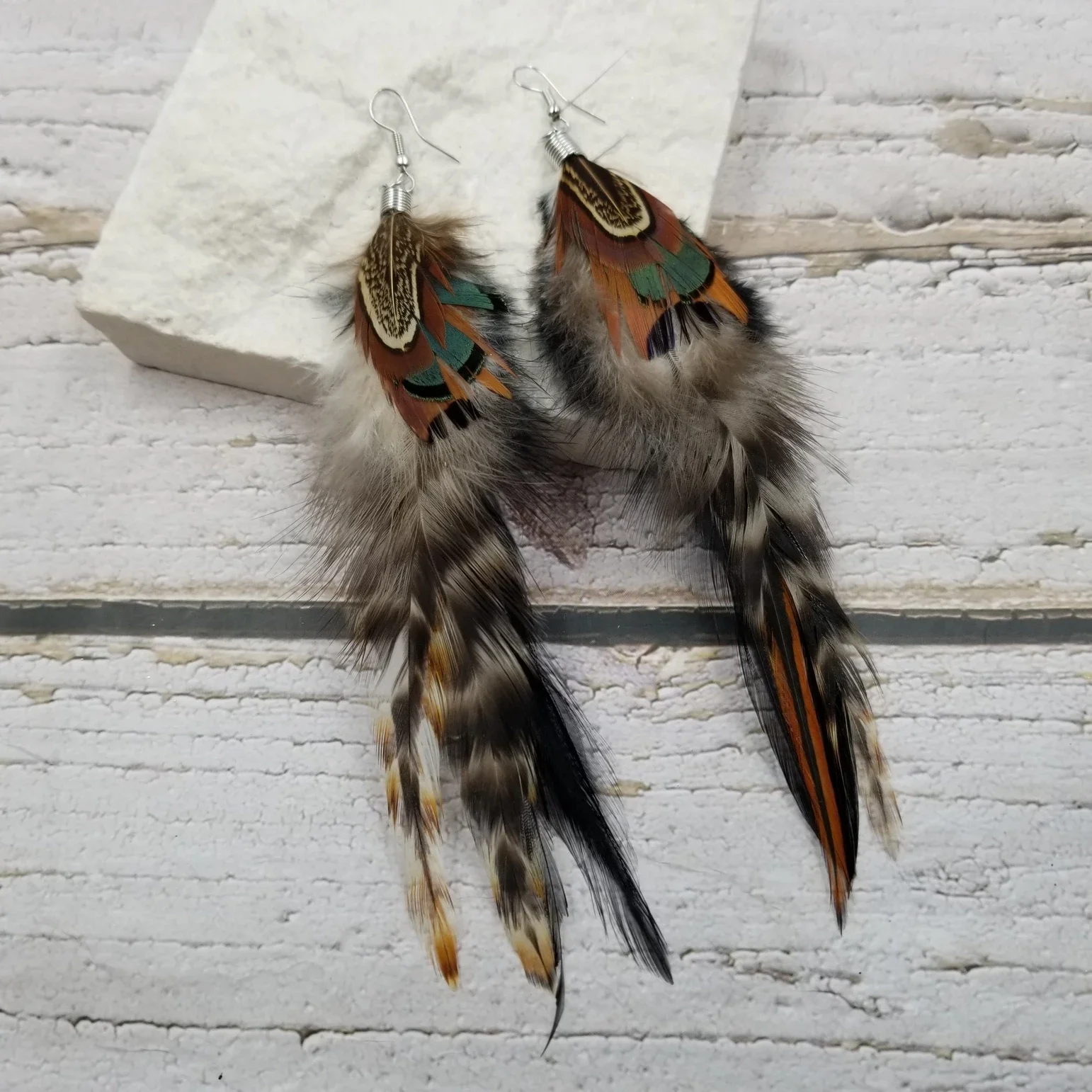 Elegant silver-colored boho earrings with swallow-tail feathers, perfect for a playful and free-spirited look. They are lightweight and easy to combine with any outfit, from casual to festive, measuring 14 × 5 cm.