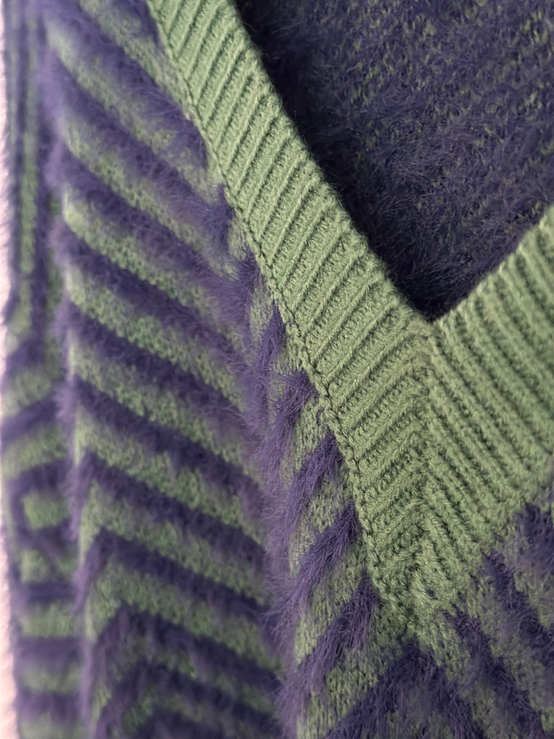 Este suéter suave en tonos azul y verde está tejido con una cómoda mezcla de poliéster y acrílico. La técnica de intarsia geométrica aporta un aspecto único y artesanal. Su diseño de talla única ofrece un ajuste cómodo y elegante a partir de la talla 38 (EU).