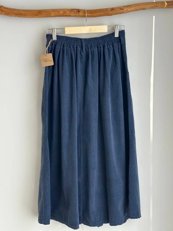 Light corduroy skirt made of 100% cotton, featuring two practical front pockets and subtle belt loops.