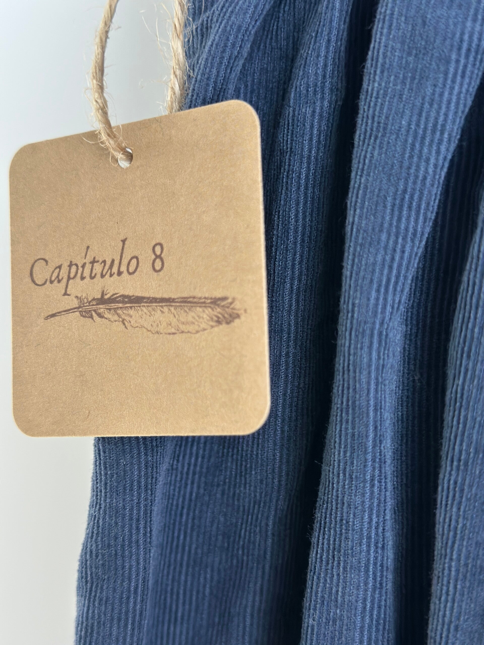 Lichte ribfluwelen rok van 100% katoen, met twee handige zakken vooraan en subtiele riemlussen.