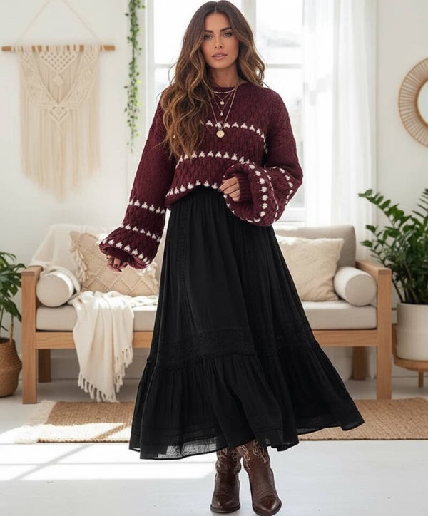 Acrylic sweater in one size. Wear the sleeves tucked in for a relaxed, cozy look. Its relaxed cut ensures a comfortable and flattering fit from size M (EU 38) and up.