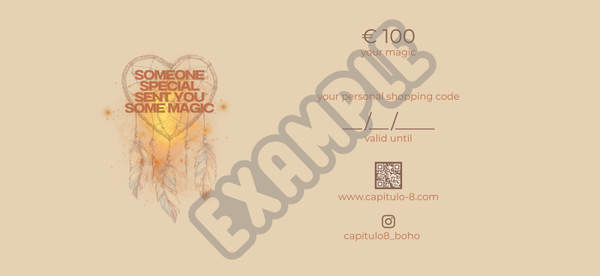 ¡Envía €100 de magia a quien se lo merece! Nuestra gift voucher digital es el detalle perfecto para cualquier ocasión — rápida, personal y sin costes de envío.