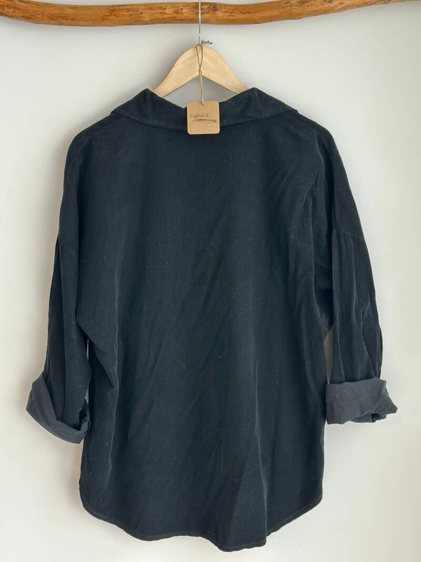 Camisa suave y ligera de pana 100% algodón con botón de color dorado.