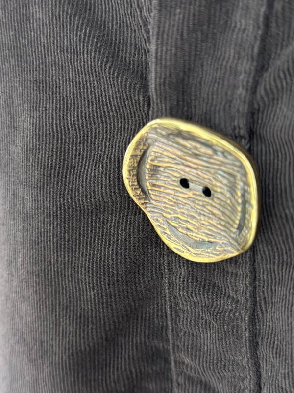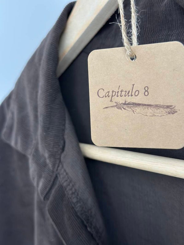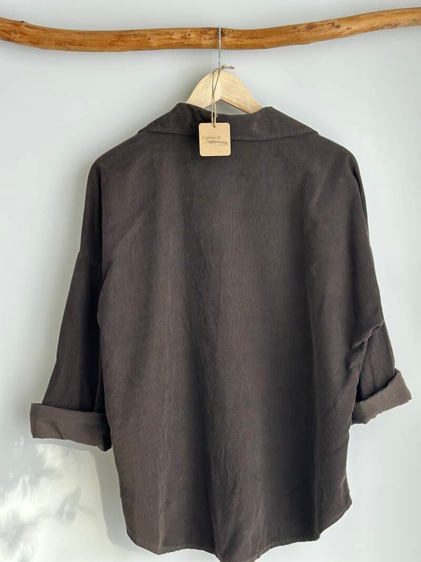 Camisa suave y ligera de pana 100% algodón con botón de color dorado.
