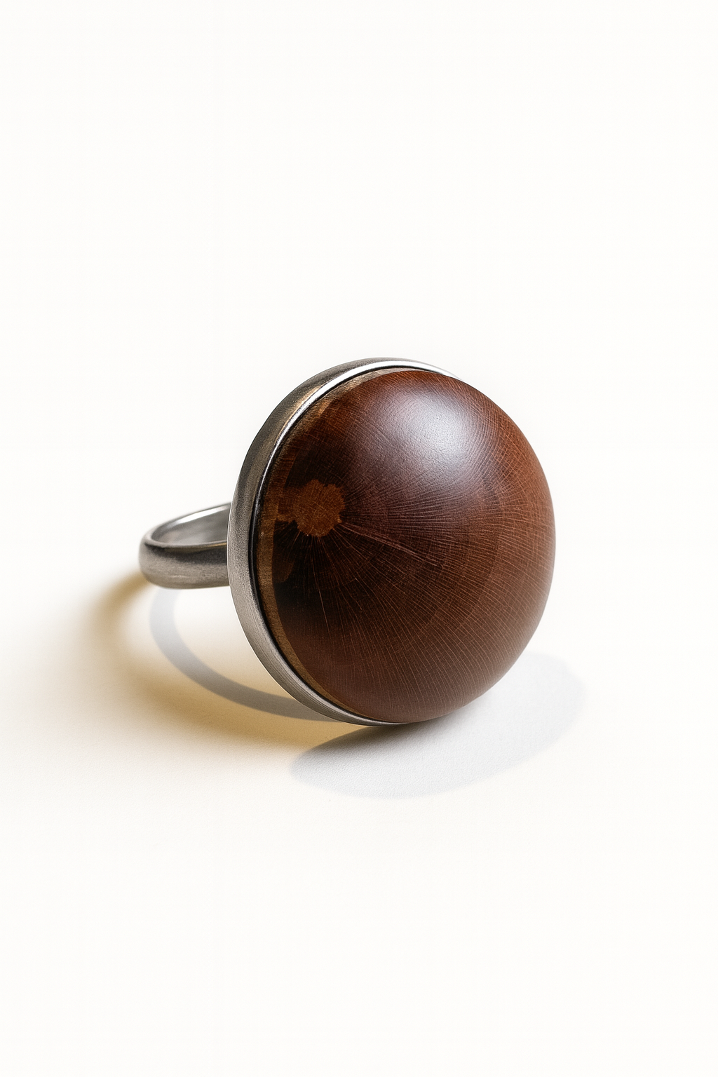 This ring is handmade from natural apricot wood. Each piece is artisanally designed and unique due to the natural wood grain.