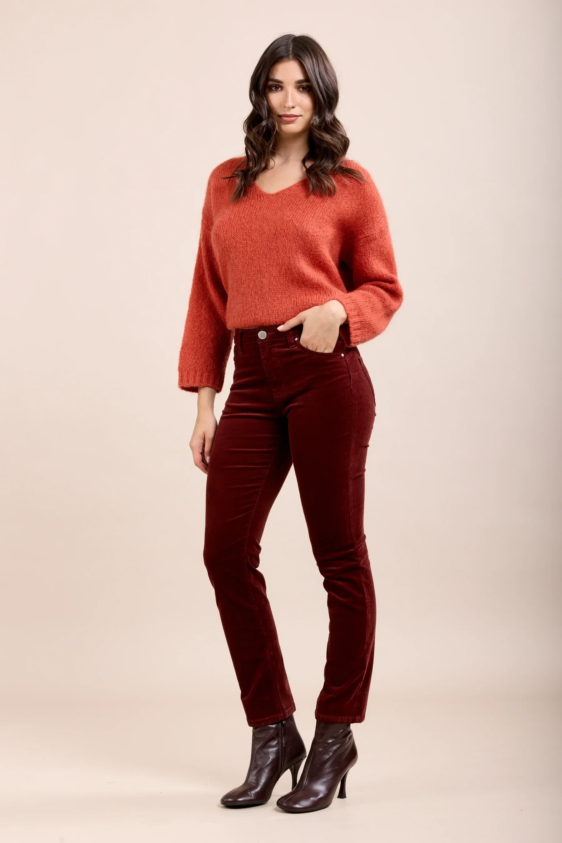 This Toxik3 slim push-up stretch corduroy pant combines comfort with a flattering silhouette. The soft, stretchy ribbed fabric hugs the body gracefully, enhancing the figure with its subtle push-up effect. Featuring a slim fit, regular waist, and an inseam of approximately 73 cm, it’s a timeless piece that blends effortless style with everyday comfort. Finished with a zip fastening and four pockets (two front, two back). Machine washable at a maximum of 30°C. Turn inside out, close zips and buttons, and wash with similar colours.