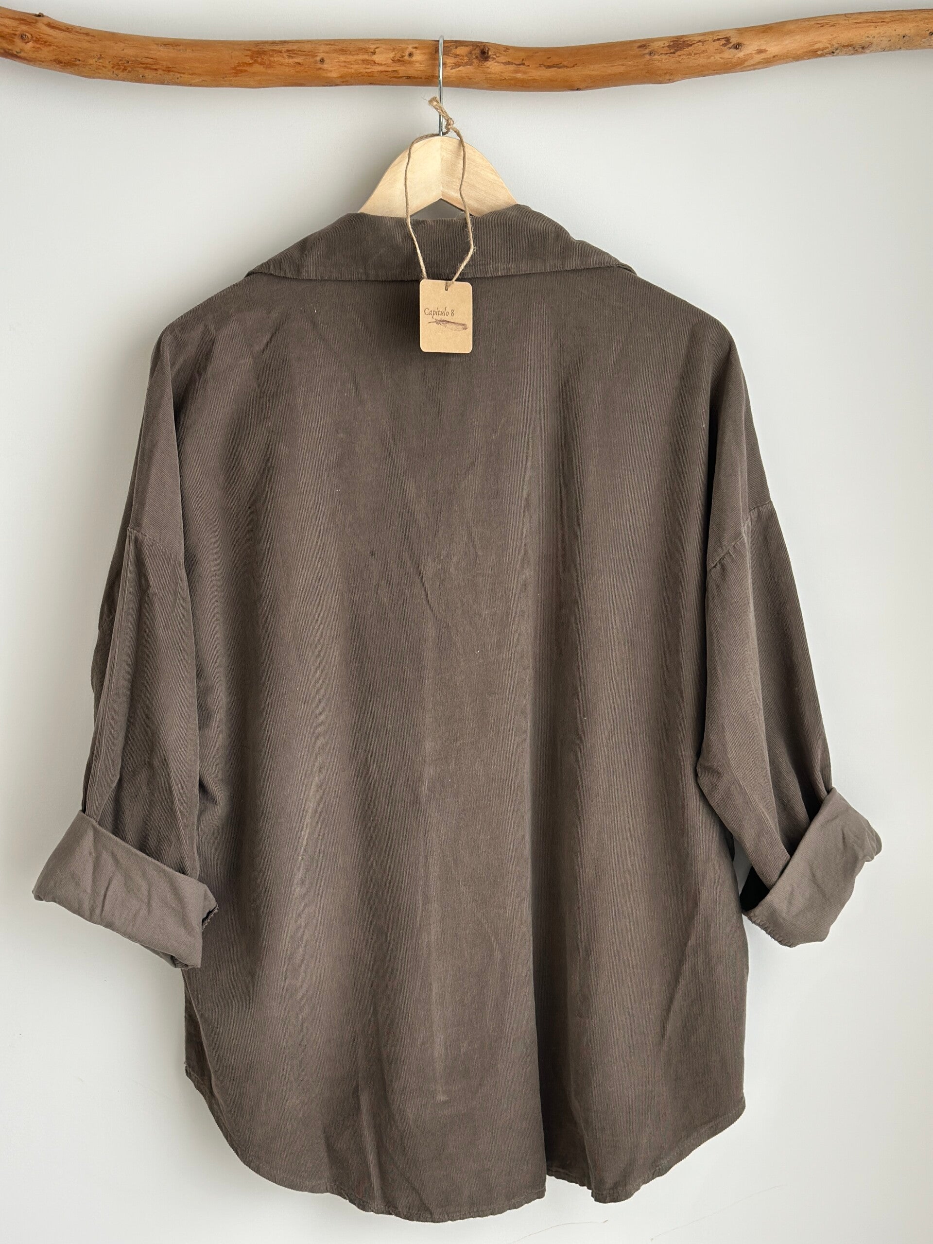 Camisa suave y ligera de pana 100% algodón con botón de color dorado.