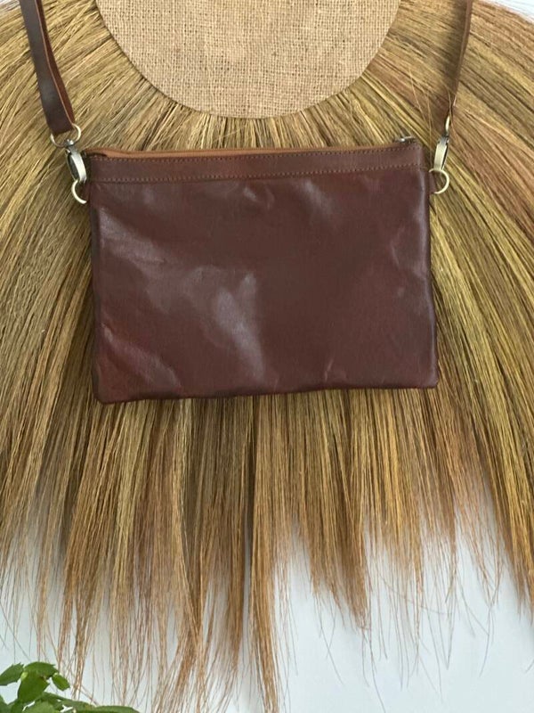 Fully lined and secured with a zipper. Comes with an adjustable and detachable shoulder strap, allowing you to wear it as a clutch or crossbody.
