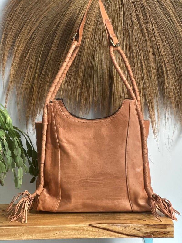 De franjes aan de zijkant zorgen voor een speelse, bohemian touch. Ruim van binnen, met zachte voering en een praktisch vak – perfect voor dagelijks gebruik met een vleugje elegantie.