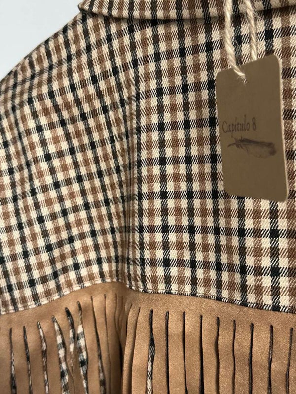 Blazer con un clásico estampado de cuadros y divertidos flecos con efecto ante en la parte posterior de las mangas. Confeccionado con una mezcla de tejidos de alta calidad y viscosa para mayor suavidad y comodidad, y totalmente forrado para un acabado refinado. Su talla única se adapta elegantemente a diferentes siluetas y ofrece un look con estilo y sin esfuerzo.