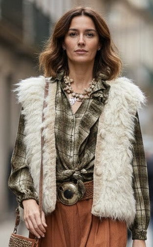 Chaleco sin mangas confeccionado en un suave tejido bouclé con una textura rica y voluminosa. Acabado con cierre de botones en la parte delantera y elaborado con una mezcla de poliéster, viscosa y poliamida de alta calidad.