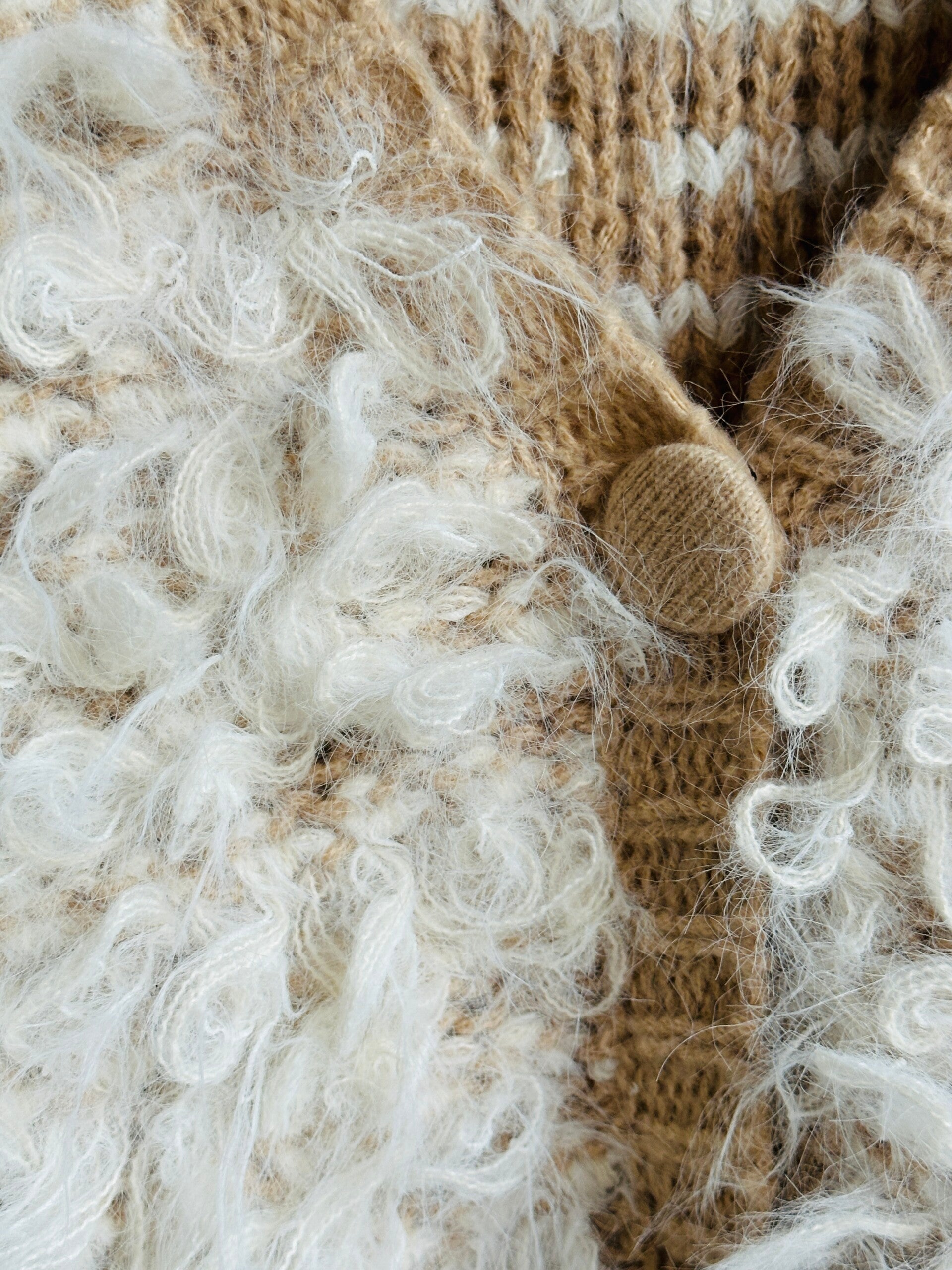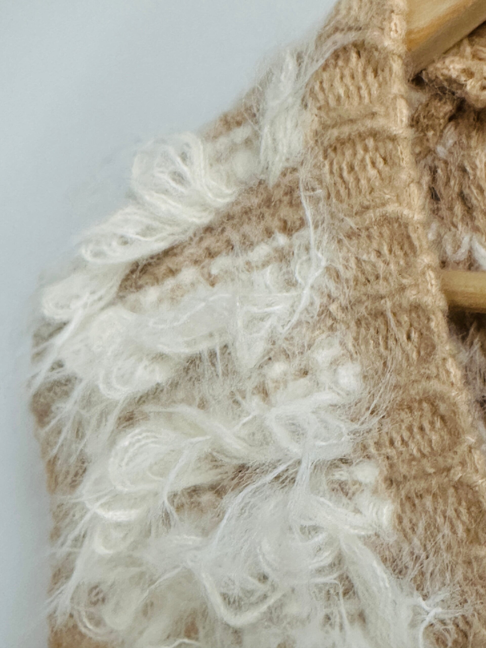 Sleeveless vest made from soft bouclé fabric with a rich, voluminous texture. Finished with a front button closure and crafted from a high-quality blend of polyester, viscose, and polyamide.