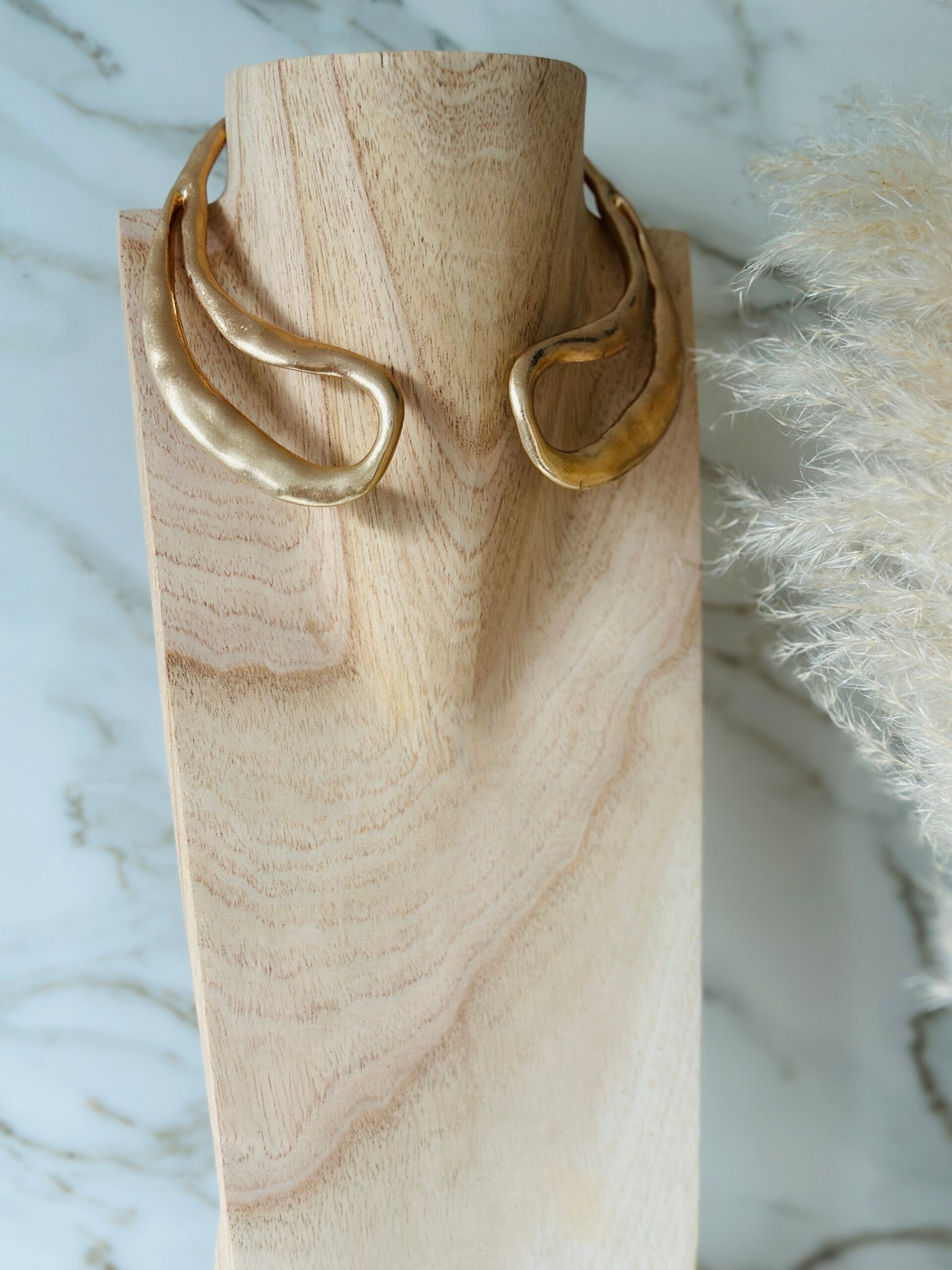 Collar de color dorado con una forma orgánica y ondulada.